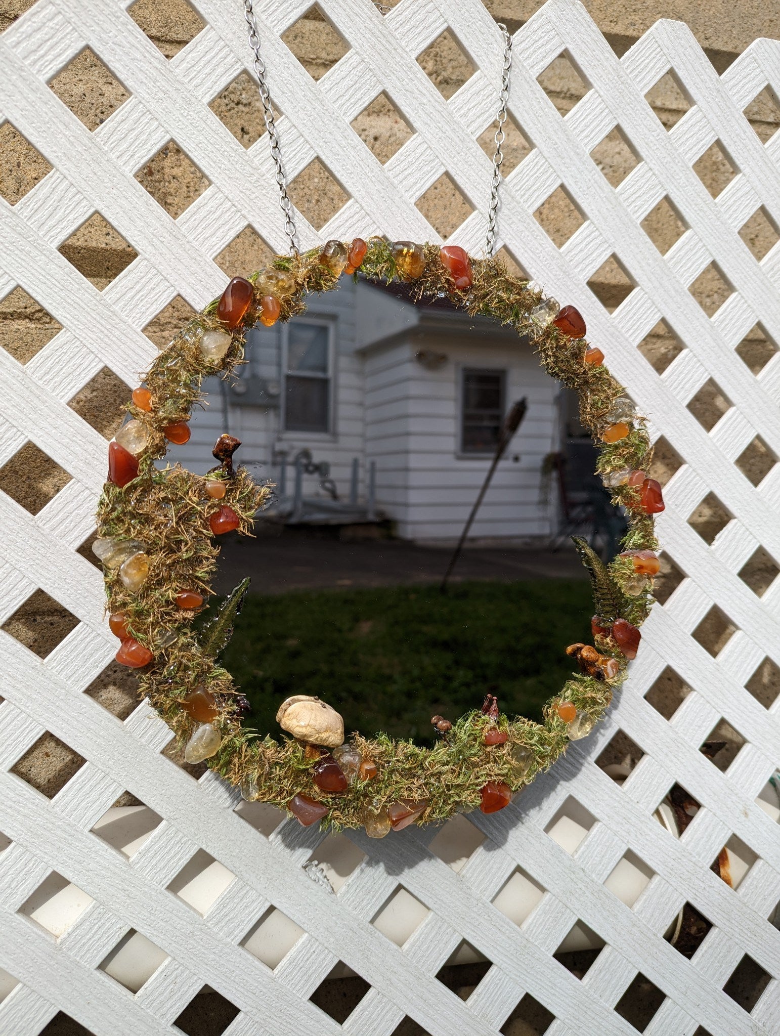 11" Carnelian & Citrine Forest Fairy Mirror ๐ฟ๐ฎโจ๏ธ๐ฑ๐๐ง๐ปโโ๏ธAbsolutely inlove with this sacral & solar plexus mirror brining confidence, prosperity, self love, fertility, boosting creativity, helping you create stronger boundaries, soothes trauma & more โจ๏ธ ONE OF A KIND