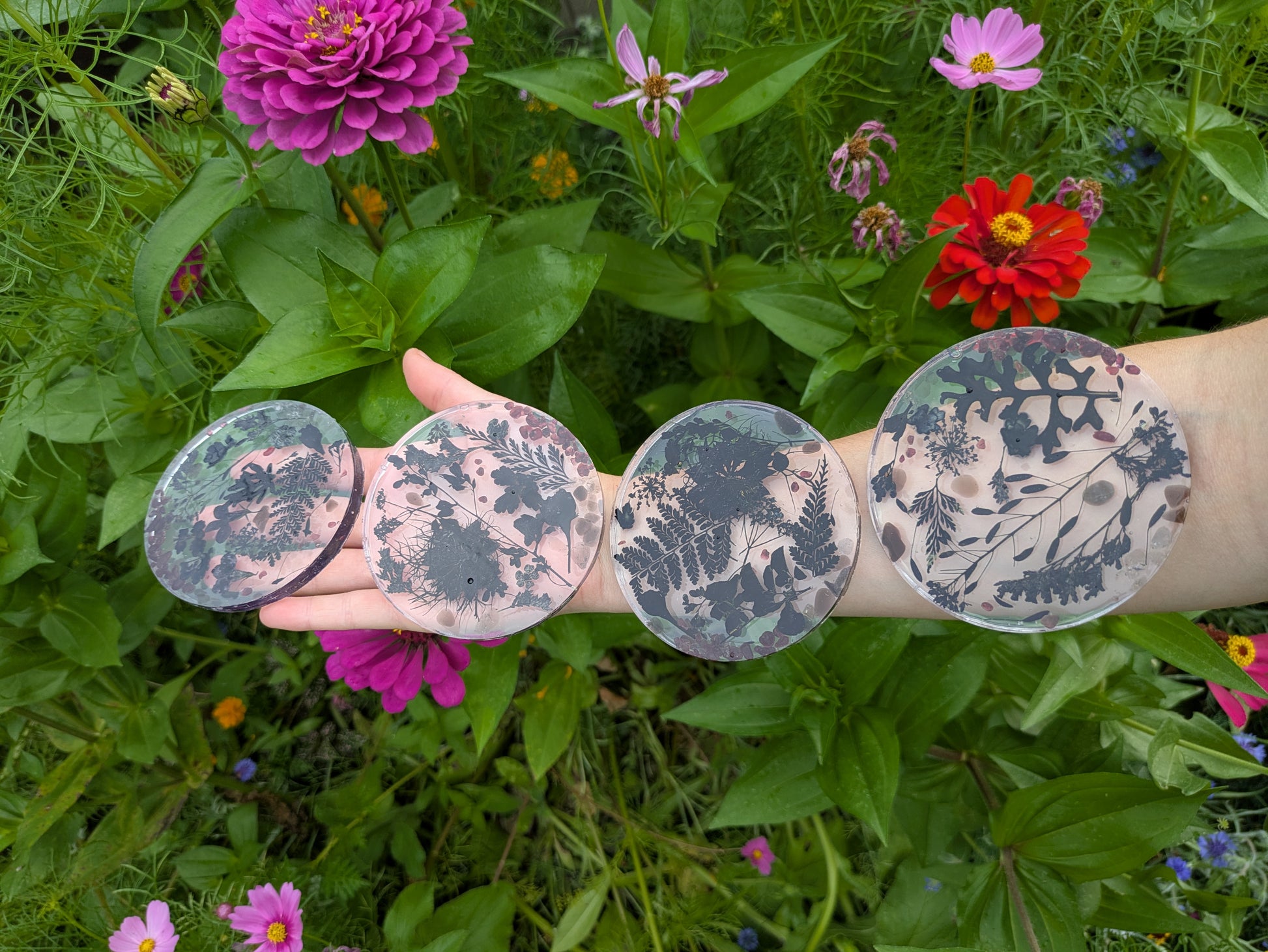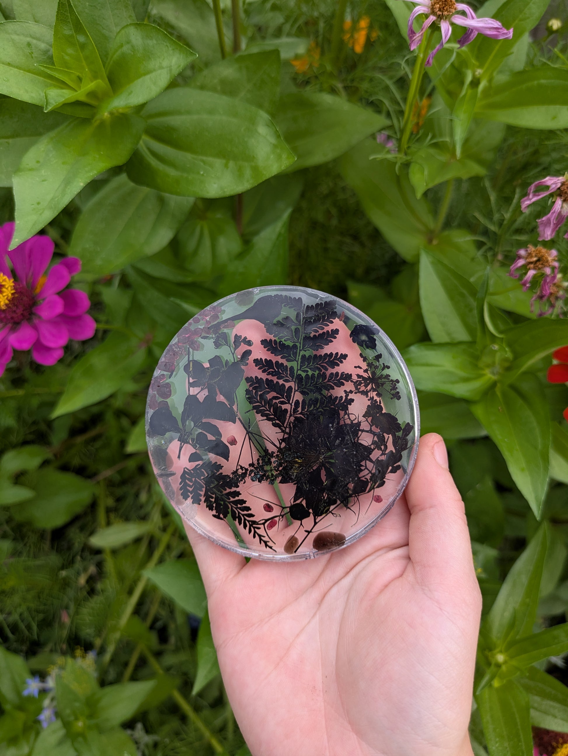 Dark Floral Coaster Set With Black Tourmaline & Red Garnet Crystals